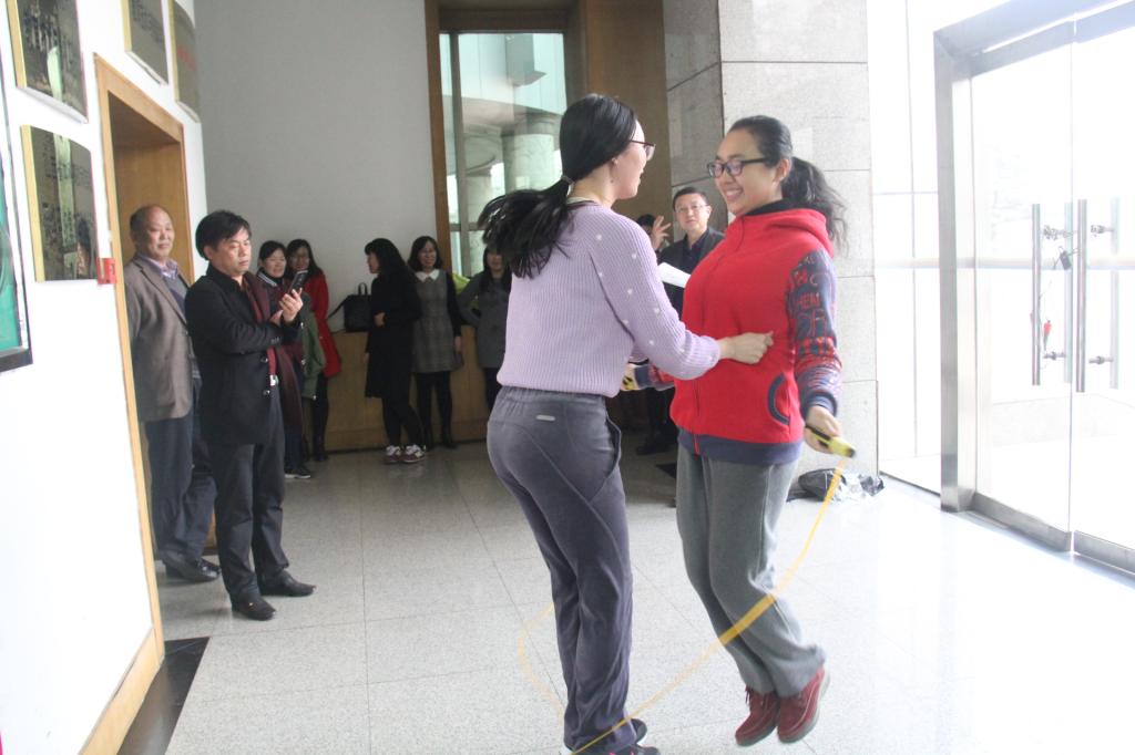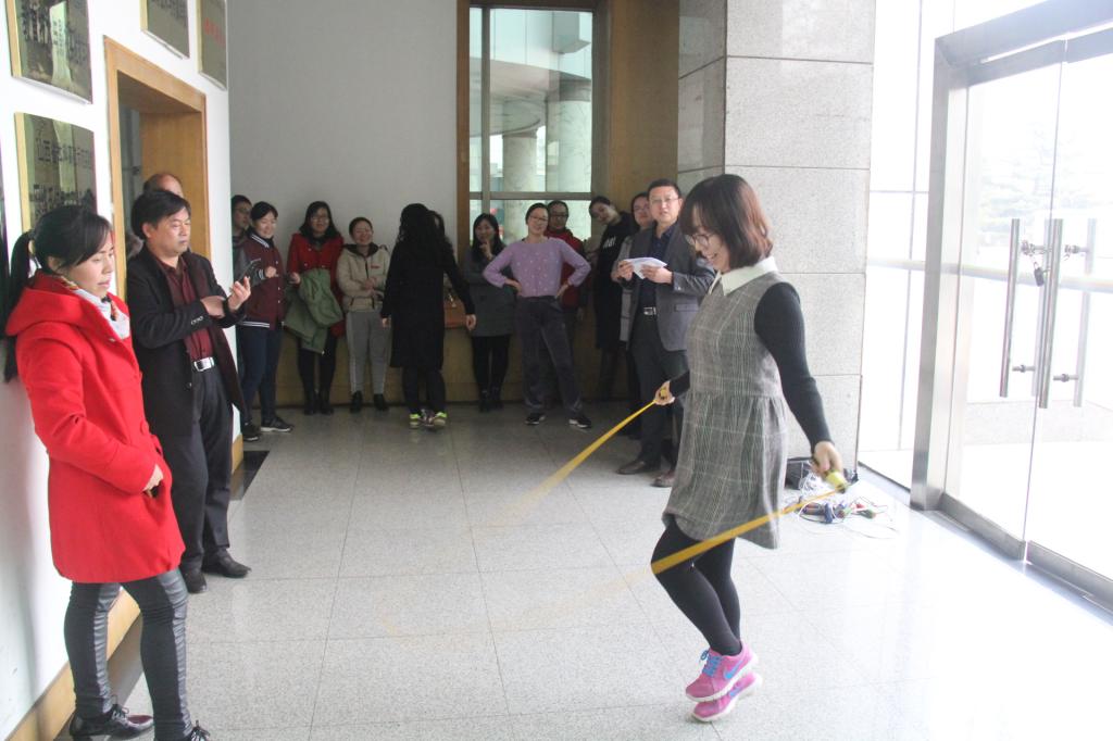 “每天锻炼一小时,健康工作五十年,幸福生活一辈子”。FUN88乐天使工会将“庆三八·我健康”定为今年三八节的主题。围绕主题,公司邀请了临汾市IPA国际注册礼仪培训师、国家二级心理咨询师陈文平老师做了女性健康知识讲座,陈老师围绕身体健康和心理健康两个方面进行了讲解,并现场教会大家几节简单易行的健身操。之后院工会组织了女教师跳绳比赛,比赛分为个人一分钟计时赛和二人同跳一分钟计时赛。最后院工会主席范晓东宣布了跳绳比赛和摄影比赛的获奖名单。