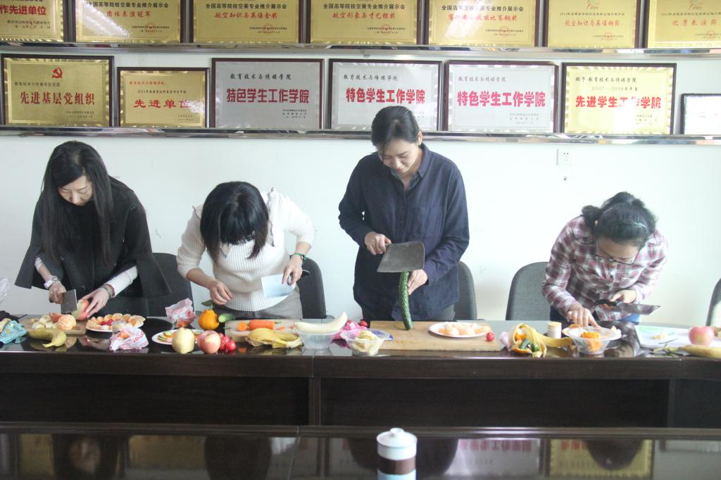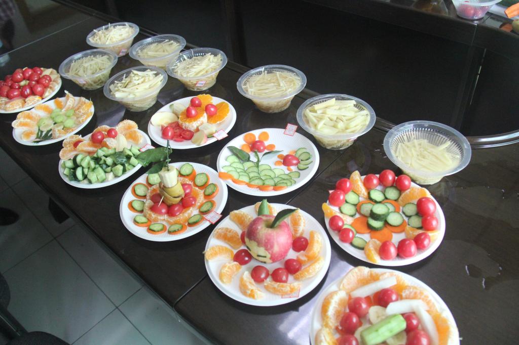 本次活动共有我爱厨房、五分钟水果拼盘造型比赛、我健身我快乐三项活动。活动中各位女教职工热情高涨、踊跃参加、气氛活跃、展现了新时代女性的靓丽风采。在我爱厨房中,展示了各位老师切土豆丝的刀工水平。在水果拼盘中,老师们根据所提供的有限水果进行构思、雕刻和拼接,将自己的拼盘装扮的生动有色,别出心裁。在乒乓球比赛中,老师们以饱满的热情全身心投入,不仅切磋了球艺,交流了球技,同时也展示了公司女教职工健康快乐、积极向上的精神风貌。最后,邵书记为获奖教职工颁发了纪念品。