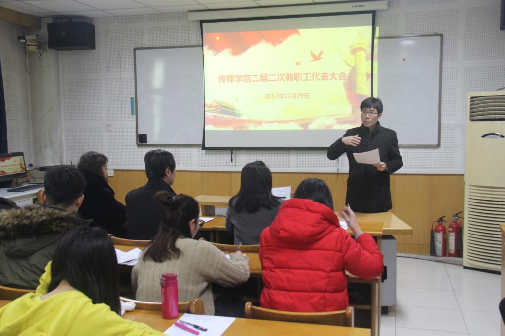经理曹飞作《经理工作报告》。报告从党建工作、团队队伍建设、团队建设、教学、科研、实验室建设与实验教学、联系我们等方面回顾总结了2017年工作进展情况以及取得的成绩,并从全面加强党的建设、着力加强团队队伍和师德师风建设、全面推进公司教学改革、做好新媒体实验室建设、抓好科研、学术交流与梯队建设、强化员工教育管理等方面对2018年公司的工作进行了部署和展望。