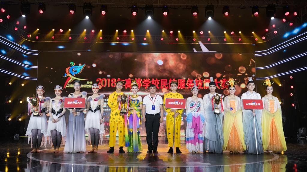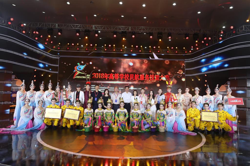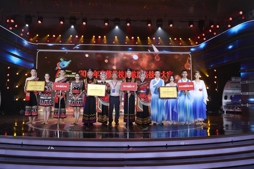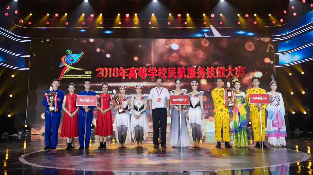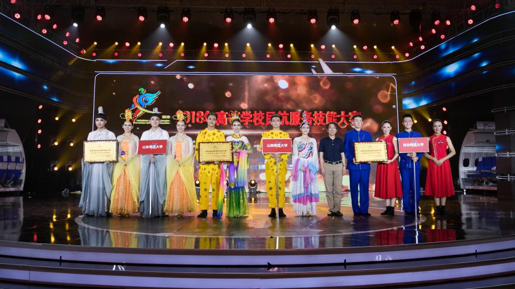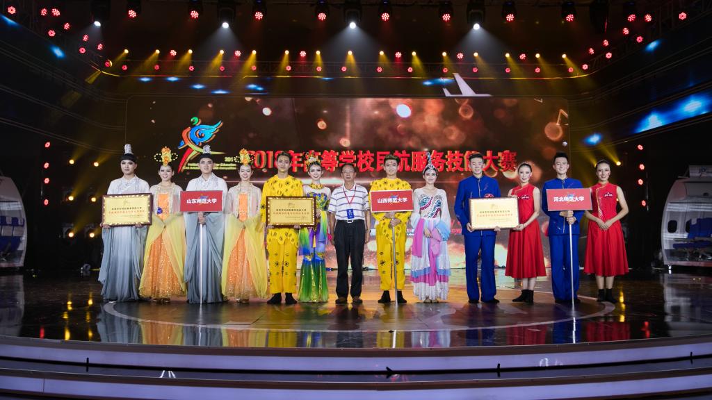 在颁奖晚会现场,公司党委副书记高峰、副董事长车文明作为颁奖嘉宾分别为获奖院校和个人颁奖。公司员工代表队排演的舞蹈《大圣归来》作为闭幕式暨颁奖晚会压轴节目出场,凭借精彩演出赢得了现场观众热烈掌声,获得了教育部领导、各航空公司评委以及与会各院校领导的高度认可和高度评价。