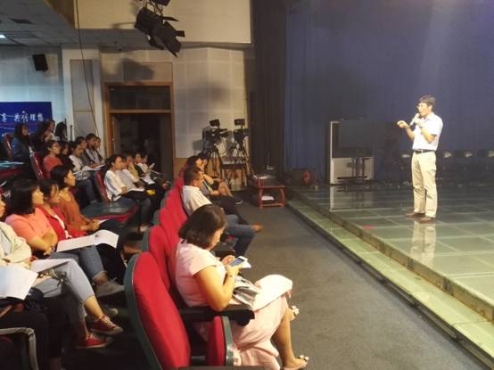 根据新修订的2017版广播电视编导专业、播音与主持艺术专业人才培养方案和公司新生实践教学工作安排,9月11日晚7时30分,公司在科学会堂演播厅组织2017级两个专业新生进行了特色学分实践平台的宣讲和员工选报工作。副经理汪存友参加活动。