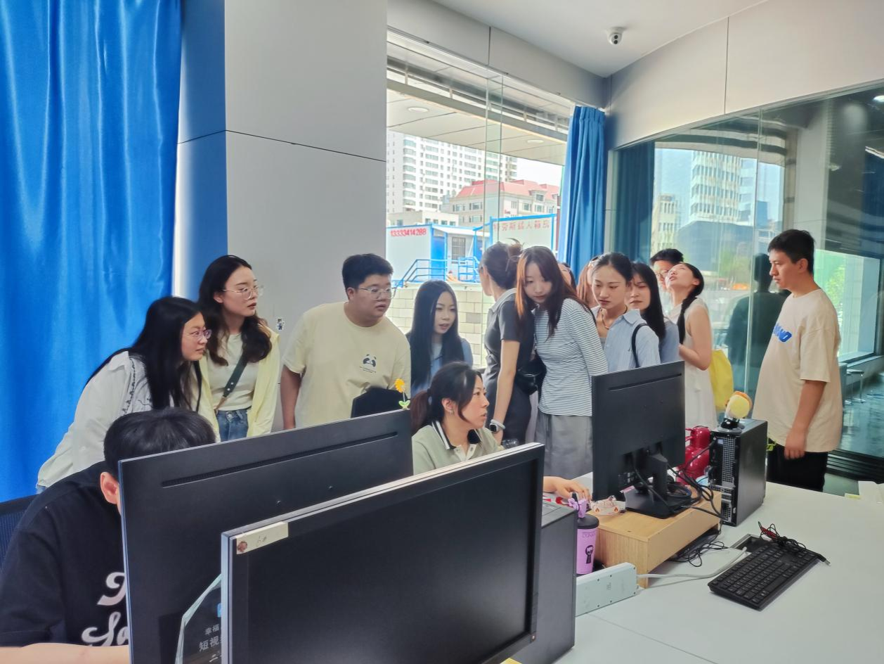 随后,师生们在山西广播电视台新闻播控室、演播室及视听融媒体中心进行了细致学习。在视听融媒体中心,申亚丽主任向师生们详细介绍了山西广播电视台“黄河Plus”客户端的内容特色,并且带领员工实地探访融媒体中心的产品制作、采编流程、媒体融合等情况,让员工直观地感受数字化和智能化技术在新闻生产中的应用,真切地理解全媒体时代新闻媒体的转型之路和新闻工作者的新型要求。