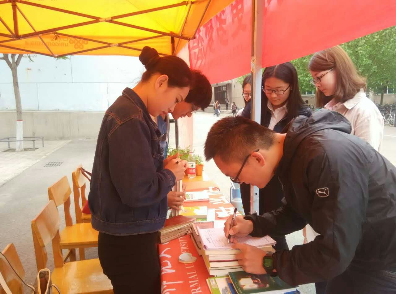 开展一天的图书募捐活动于2016年4月19日在校医院门口再次如约而至。公司工作人员、居民也相继加入爱心队伍中。