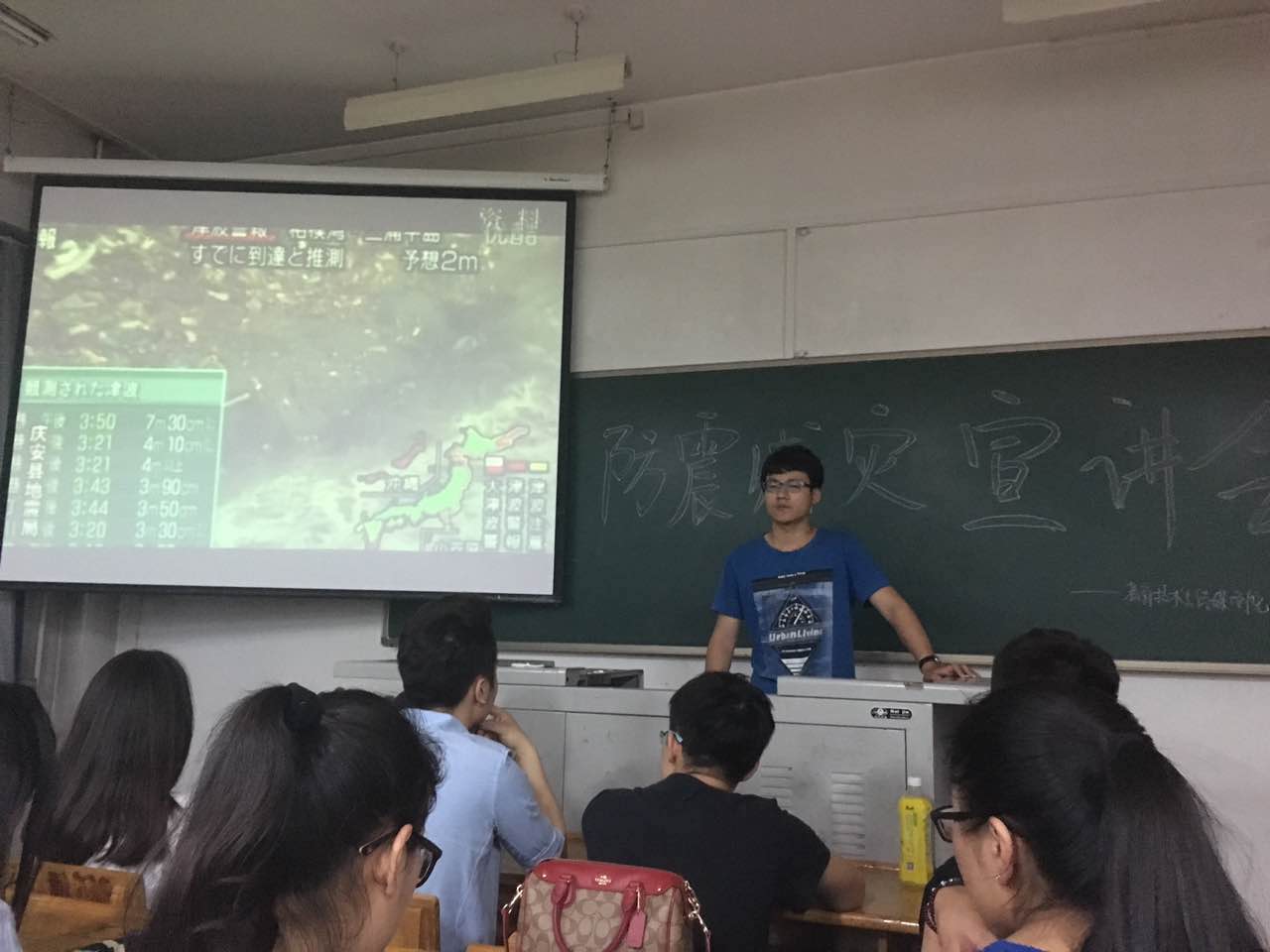 为提高同学们遇险自救能力,普及防震减灾知识,在5.12全国防灾减灾日来临之际,公司团委于5月11日晚在10216教室举办了防震减灾宣讲会,大一各班班委和入党积极分子参加了此次宣讲会。