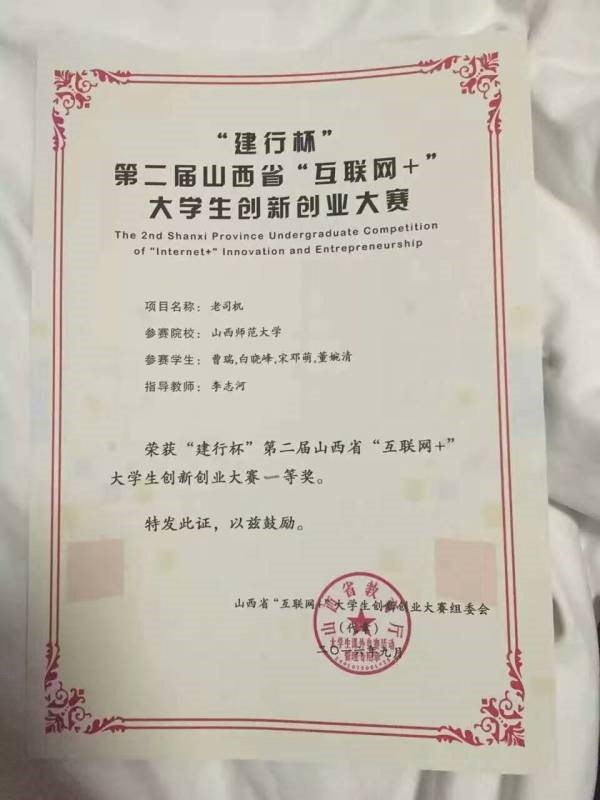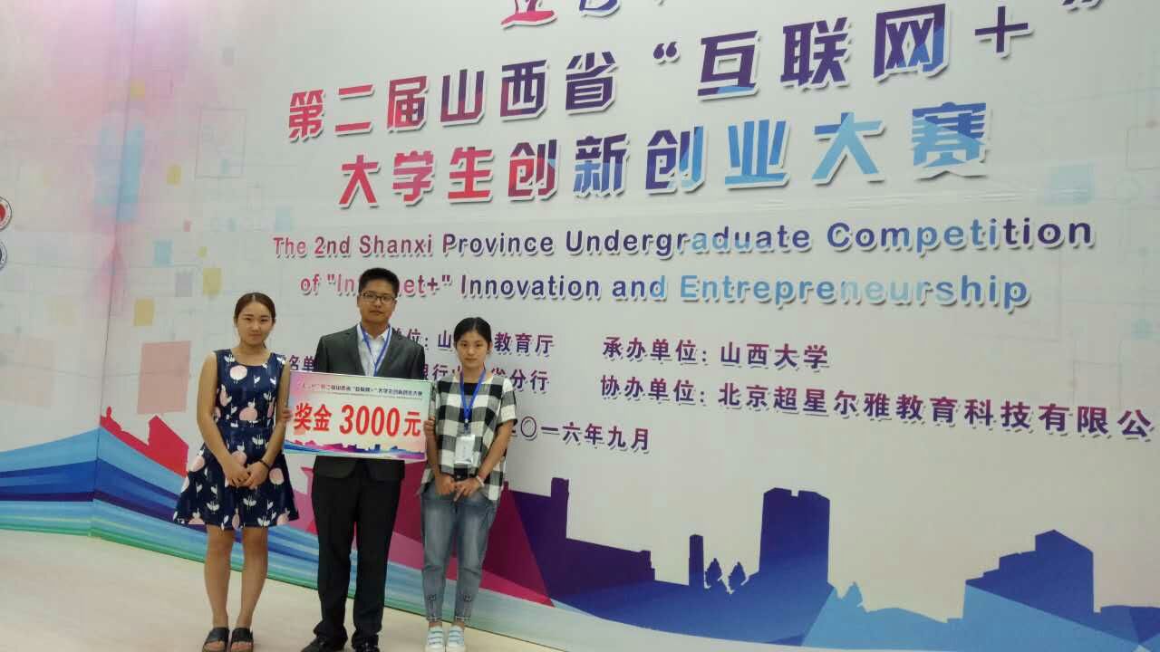 2016年9月9日到10日,“建行杯”第二届山西省“互联网+”老员工创新创业大赛在山西大学举行。公司两个团队和经管公司一个团队代表FUN88乐天使参赛,取得了两项一等奖和一个二等奖的好成绩。其中公司曹瑞团队的老司机学车手机APP(驾照考试)和牛越洋团队的Book+Crossing(图书分享)获得一等奖,经管公司臧楠楠同学团队的途智宝旅游获得二等奖。