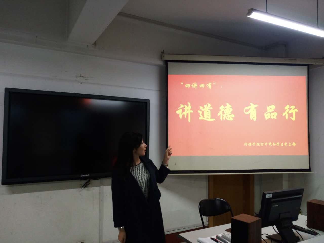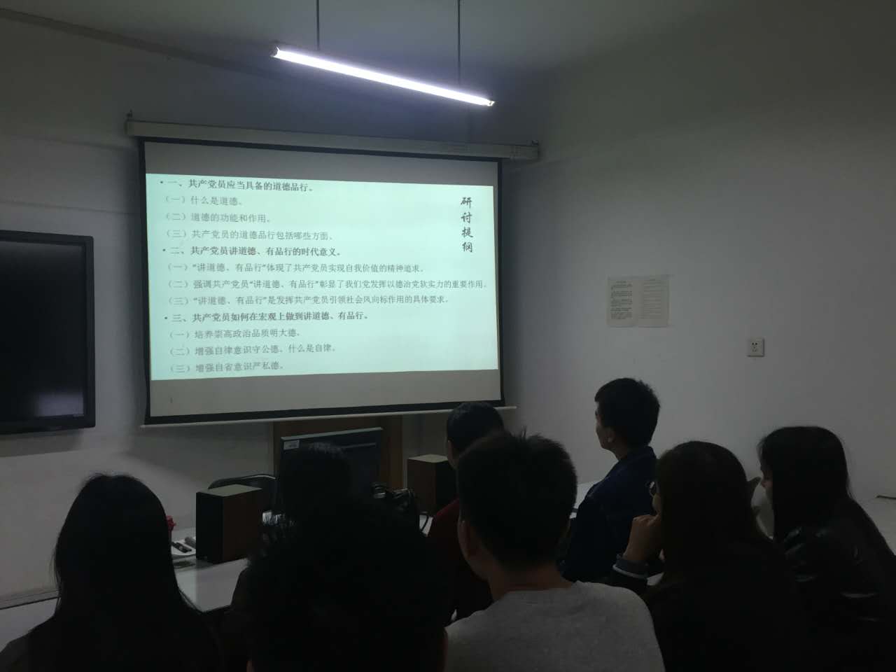 接着,员工代表郝海军就“讲道德、有品行”研讨提纲进行了相关发言。他通过播放ppt的形式,具体阐述了共产党员应当具备的道德品行,共产党员讲道德、有品行的时代意义,共产党员如何在宏观上做到讲道德、有品行。