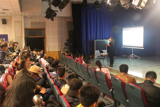 蔡春芳老师首先以各个时期著名电影和电影人入题,向大家展示了电影和广播电视发展史的独特魅力。然后她向在场的同学们提出了几个问题:广播电视编导专业或播音专业是什么?对这个专业我们了解吗?学这个专业以后能干什么?看到同学们难以回答的样子,蔡老师全面的讲解了专业的优势,介绍了就业的方向,并列出了专业具体的就业岗位。结合大家共同的经历以及蔡老师曾经员工的故事,她启发大家:大学提供给我们第一次选择的机会,选择很多元,世界比我们想象的要大,所以专业跟综合能力都很重要。未来的工作未必与我们所学的专业相关,我们应该让自己更有竞争力,选择一条适合最自己的道路。