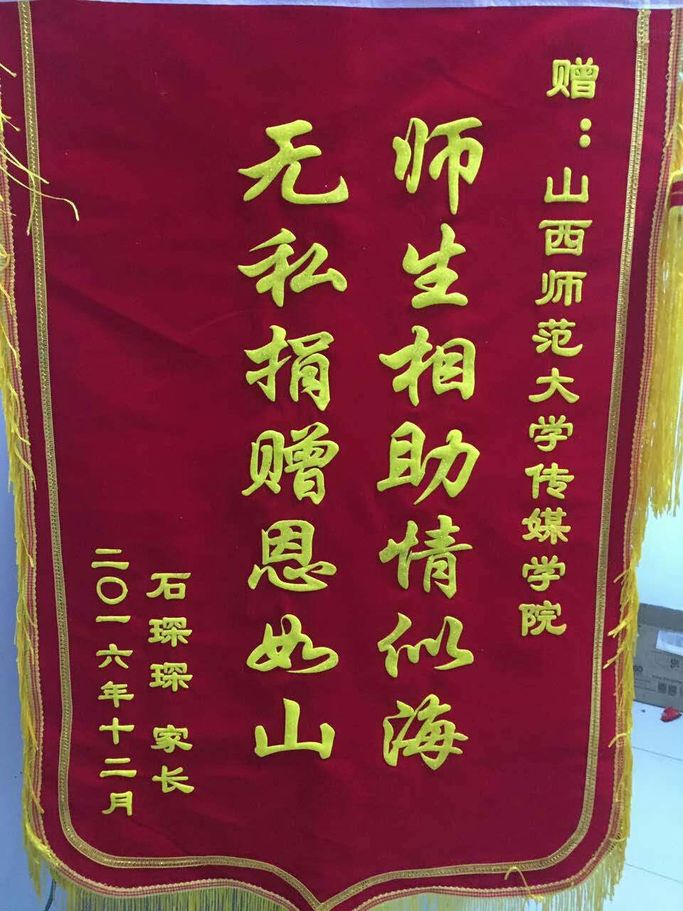 随后,物信公司青协主席为公司颁发12月20日中午由石琛琛的父亲给参与捐款的各公司送来 “师生相助情似海,无私捐赠恩如山”的锦旗,以示感激之情。