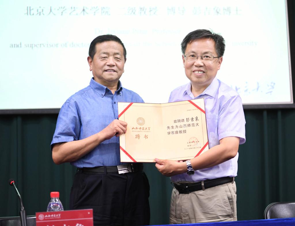 | 副董事长王云为彭吉象教授颁发聘书 |