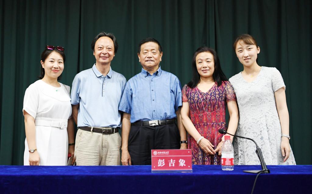报告会上,彭吉象先生围绕着“中国艺术如何走向世界”、“中西美学与艺术比较”以及“中国传统艺术精神”三个问题进行讲解。彭先生认为“用现代的艺术语言体现中国的优秀传统文化”是中国艺术走向世界的必由之路,随后彭先生举出了在绘画、建筑、舞蹈、音乐、电影、电视(大型晚会)和文学等艺术门类中,让中国艺术走向世界的具有代表性的艺术家和艺术作品,论证了他的观点。在“中西美学与艺术比较”部分,彭先生认为中西美学存在着极大的不同,其中一个重要的不同就在于西方艺术追求“美与真的统一”,而中国艺术追求“美与善的统一”。在第三个部分,彭先生认为儒家思想核心突出“仁”,要“入世”,讲求“人与社会之和”;道家思想核心突出“道”,要“出世”,讲求“人与自然之和”;佛家思想核心突出“心”,要“遁世”,讲求“人与心之和”。中国传统艺术精神是由此“三家”共同组成的,但这三种美学、三种文化之间并非是截然分开的,而是相互渗透与融通的。报告结束后,彭吉象先生与在场师生进行了亲切交流,耐心解答了师生们提出的问题。