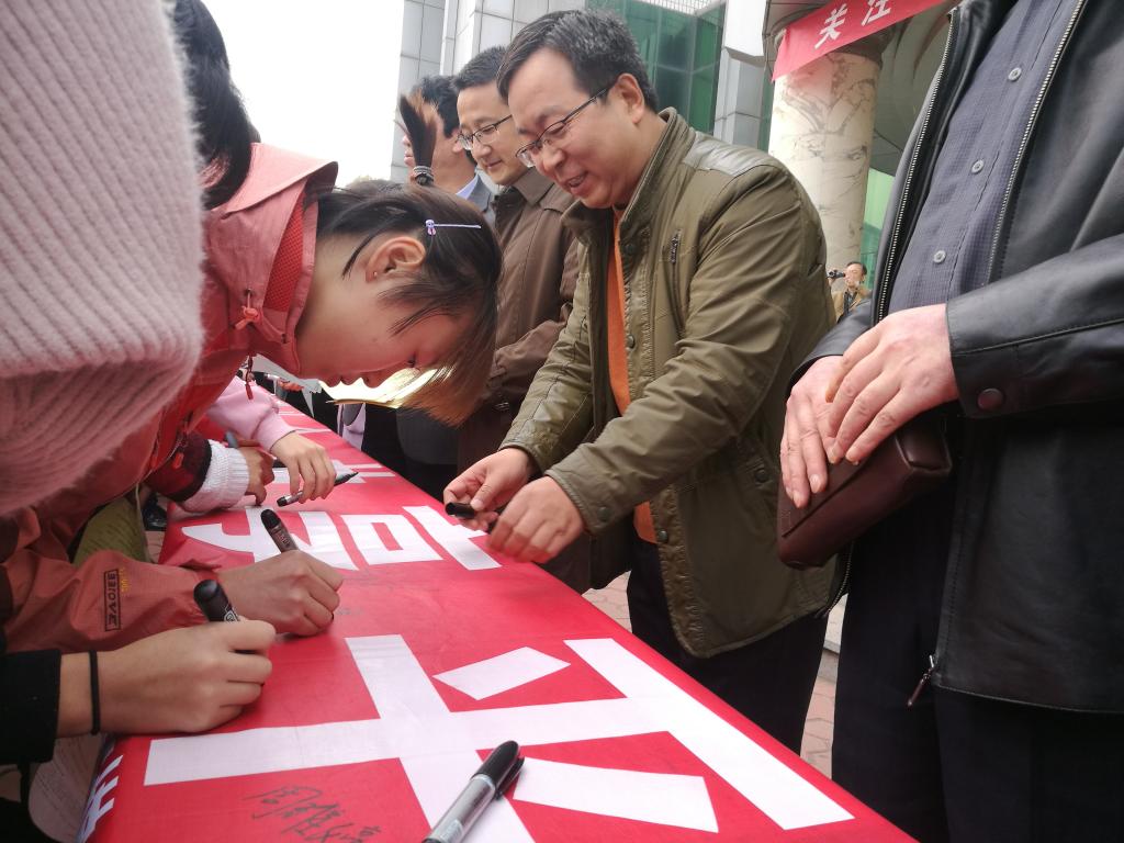 随后,到场领导向师生们分发了消防知识宣传材料,并与大家一起进行了现场签名。