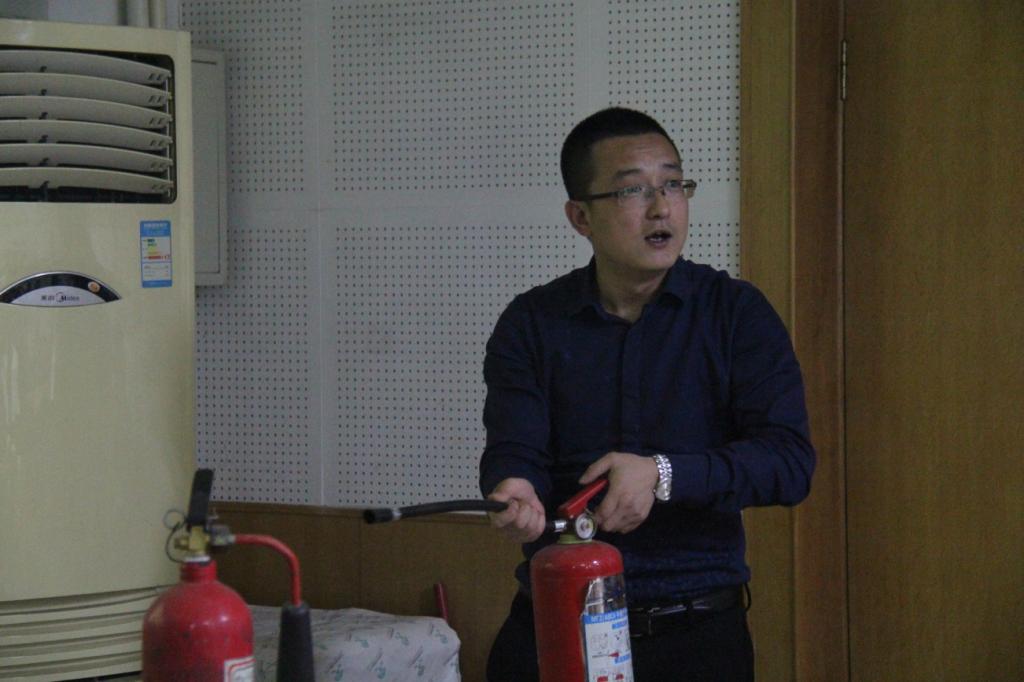 李志强教官对灭火器使用进行现场示范