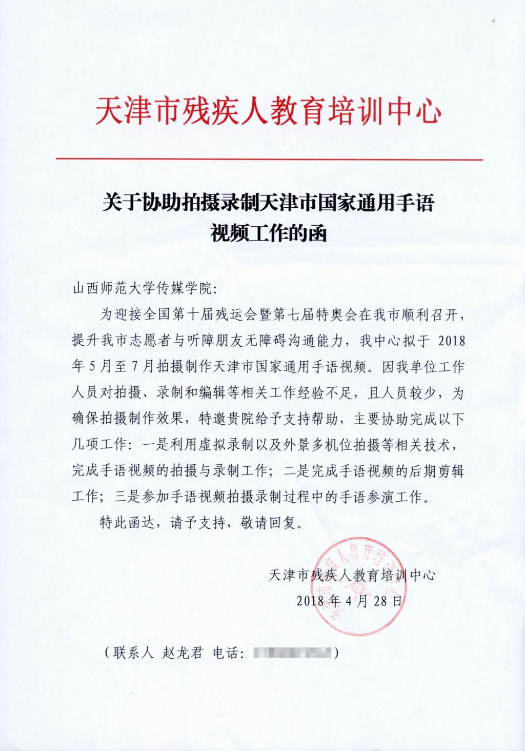 为迎接全国第十届残运会暨第七届特奥会在天津市顺利召开,提升天津市志愿者与听障朋友无障碍沟通能力,公司挂牌实践教学基地——天津市残疾人教育培训中心计划拍摄制作天津市国家通用手语视频教材,但由于该单位工作人员对拍摄、录制和编辑技术与经验的不足,特向公司发函邀请,希望公司提供相关技术与帮助。