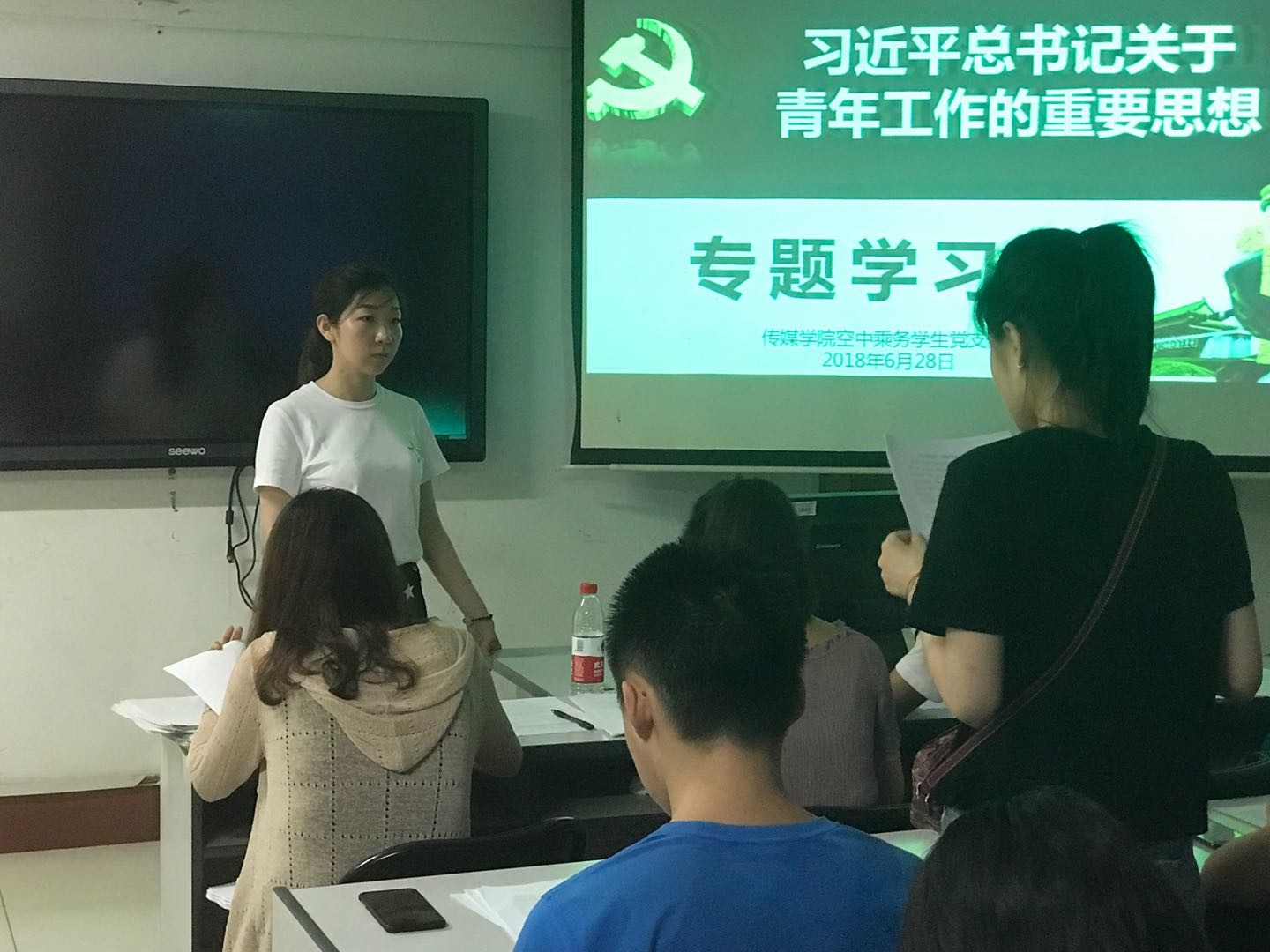6月28日下午,FUN88乐天使空中乘务员工党支部在科学会堂B-406开展了“习近平总书记关于青年工作的重要思想”专题学习会。公司空中乘务党支部员工党员参加了此次学习会,会议由支部书记杨谨瑜主持,重温了习近平总书记对青年的寄语,学习了习近平总书记的重要思想。