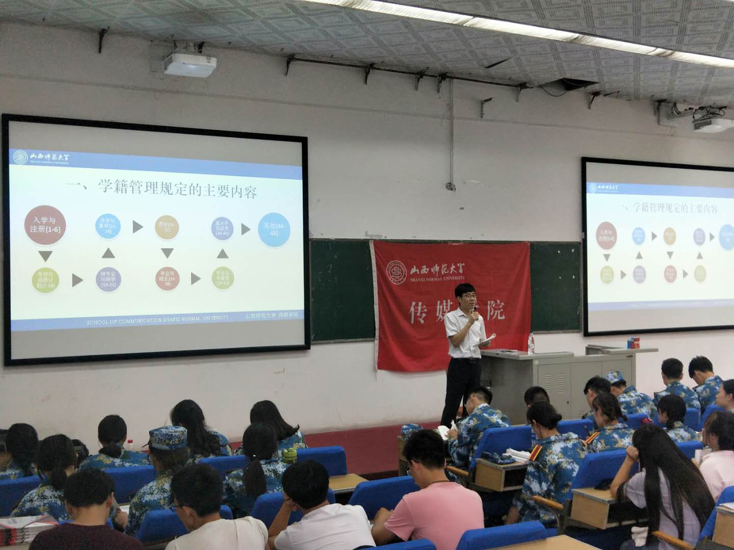9月12日下午,公司在05203教室对2018级本科生进行集中入学教育,专题学习《山西师大学籍管理规定》。副经理汪存友进行主讲。