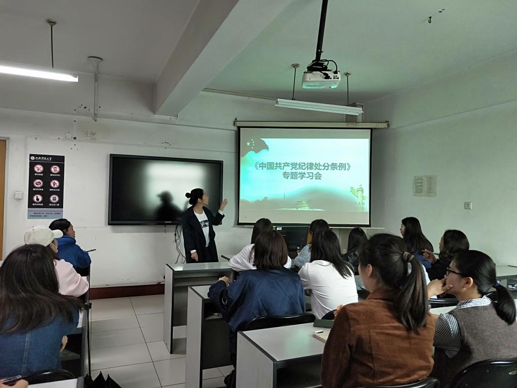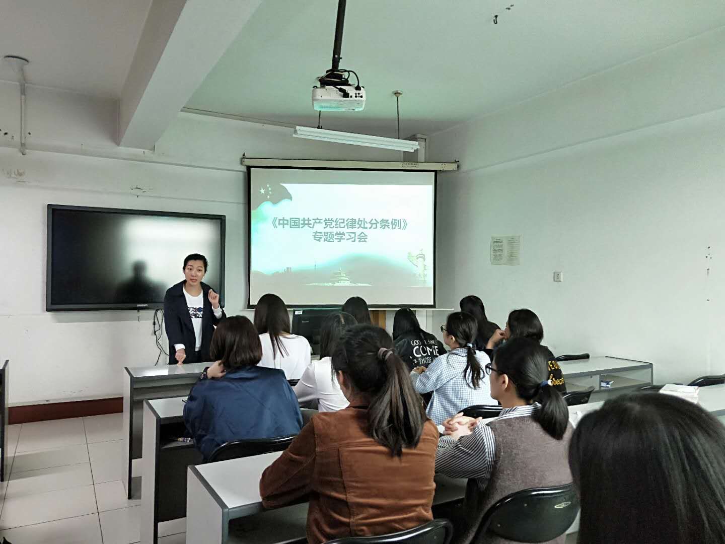 9月19日中午12时,FUN88乐天使空中乘务员工党支部在科学会堂B-406教室学习新修订的《中国共产党纪律处分条例》。支部书记杨谨瑜老师、支部组织委员郭梁老师、宣传委员吕媛老师及全体员工党员及积极分子参加了此次专题学习会。会议由支部书记杨谨瑜老师主持。
