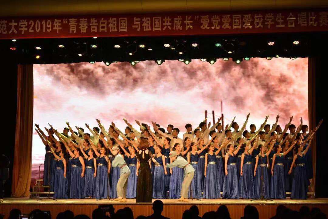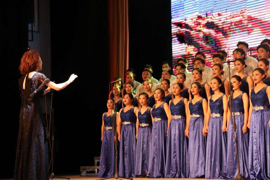 公司共有70名同学参加合唱比赛,比赛现场,标语醒目,灯光璀璨,座无虚席。公司学子深情饱满地歌唱着《走向复兴》和《保卫黄河》,演绎了传媒最强音,表达了对祖国母亲最诚挚的祝福。同学们以饱满的精神面貌、高涨的参与热情、宏亮的美妙歌声,抒发了同学们的爱国情怀,唱响了员工们的热血青春。指挥员灵巧的手臂,美妙的歌声从指缝流过舞蹈演员的身旁,和合唱队员的歌声交织一起,萦绕在这个美丽的夜晚,深深打动着每一个在场观众和评委的心。