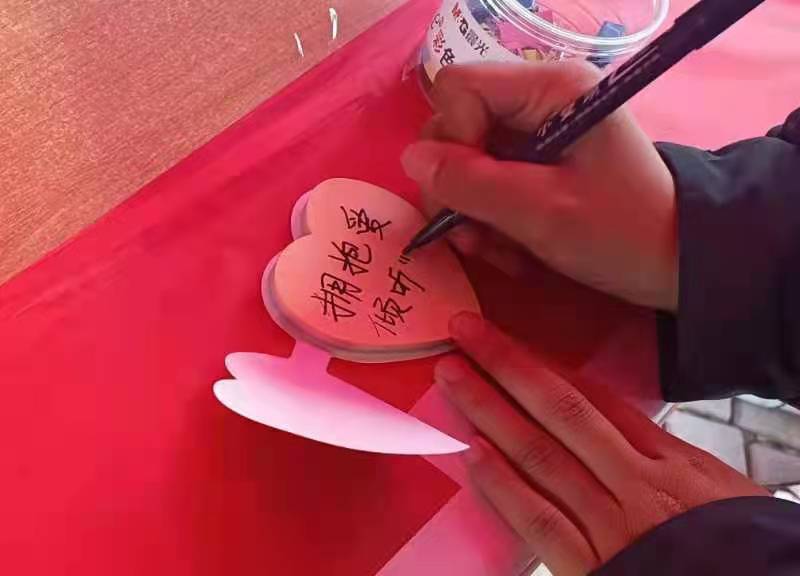 此次活动通过发放宣传手册、有奖问答等方式,向师生宣传了艾滋病的危害、如何预防艾滋病等知识,倡导对艾滋病病人的人文关怀。此次活动分为四个环节,一是“我对艾知多少”有奖竞答。参加活动的人员可以现场抽取试题回答,答对者有礼品赠送。二是“为艾发声”。同学们将自己对艾滋病人的爱与鼓励写在心愿便利贴,并粘贴在心愿墙上,以表达对艾滋病人的关怀。三是“与艾抱一抱”。参与活动的员工可以与装扮小熊拥抱,在拥抱中感受爱的力量。四是“网络知识竞赛”。各班分别下发二维码,进入全国艾滋病知识竞答和防艾知识学习。活动中,参与者在工作人员的引导下,积极有序地参加活动,在“心愿墙”上纷纷留下自己对艾滋病人的鼓励话语,并积极参加网上知识竞答和学习。在场的同学们纷纷表示,在日后的生活中要正确对待艾滋病患者,给予他们更多的爱与理解。