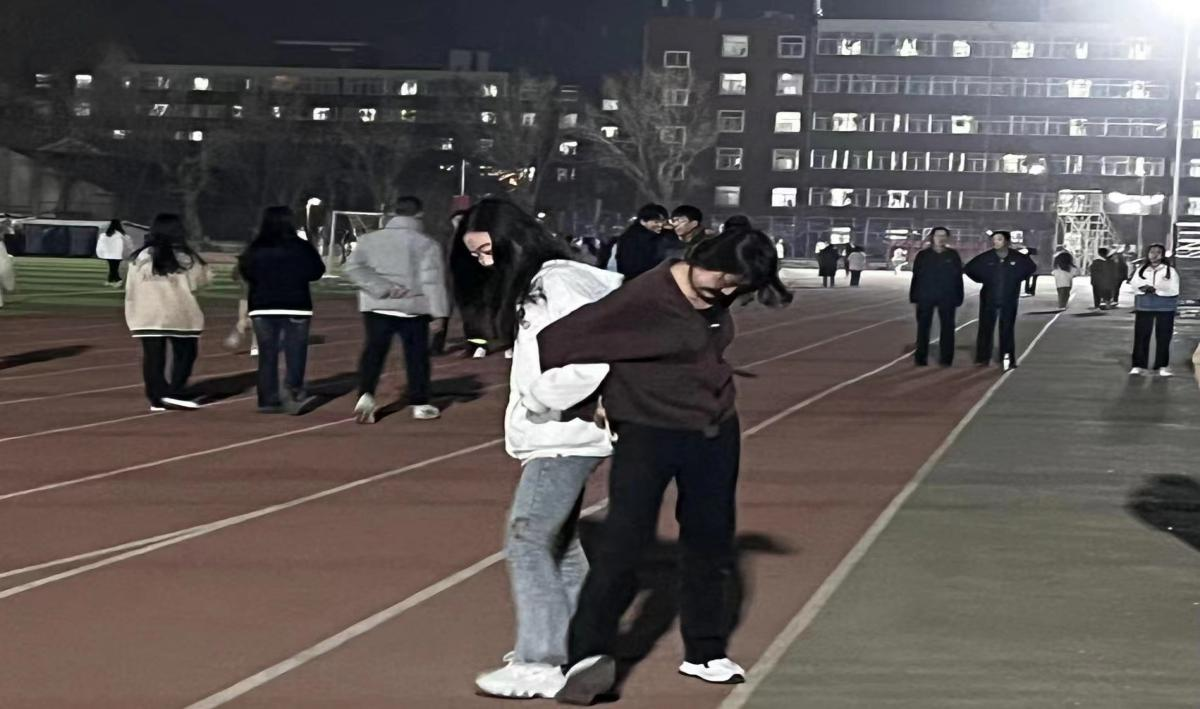 晚上8时许,在操场的栅栏外驻足者又添许多。欢呼声,呐喊声,加油声,喊声雷动,声声震耳,此起彼伏。他们为自己也为运动员们呐喊着,每一声都宣扬了师大人为了前进不懈的追求,每一次呐喊助威都为本有冷意的操场新增几分暖意。此时此刻,跑道便是我们精彩的舞台,声声加油便是我们最高的奖项!