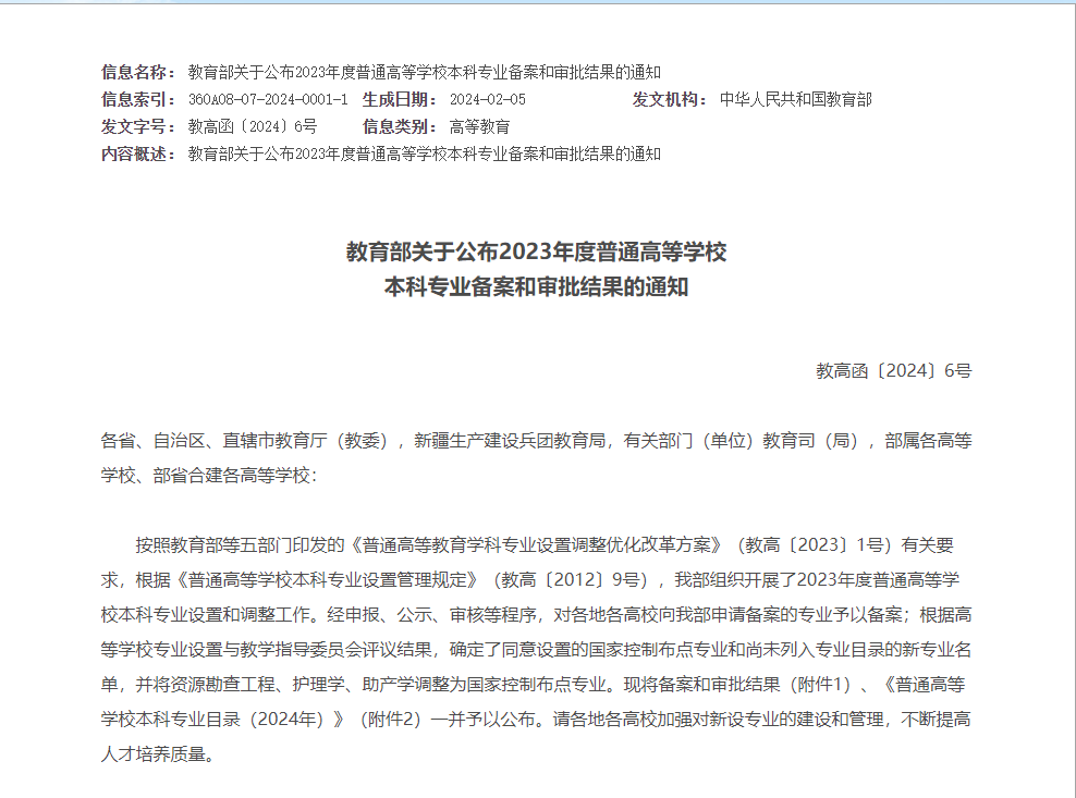 近日,教育部公布了2023年度普通高等公司本科专业备案和审批结果,共新增备案专业点1456个、审批专业点217个(包括160个国家控制布点专业和57个目录外新专业),公司网络与新媒体专业成功获得批准。