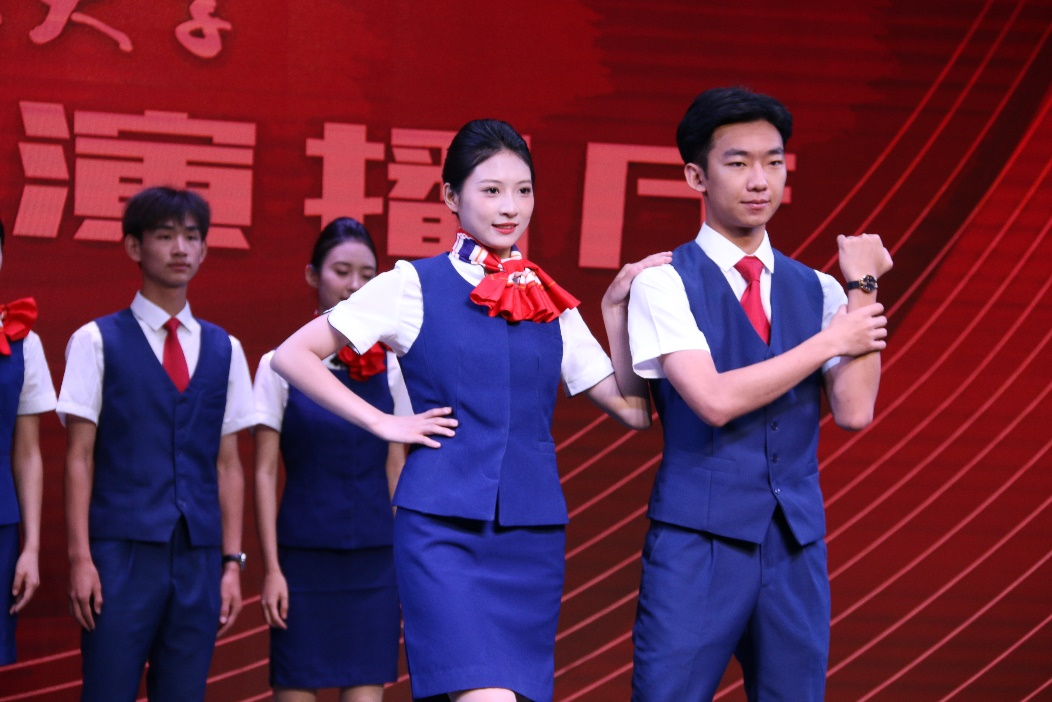 在周副经理的带领下,师生一行来到公司演播厅开展交流分享会,活动由副经理凡军义主持。首先,古县一中师生们欣赏了由公司学子带来的舞蹈《春颂》、双人朗诵《红色追忆》以及航空服务艺术与管理专业礼仪操《梦想云端》等表演。表演结束后,郭梁老师介绍了公司基本情况,同时欢迎古县一中同学们报考公司相关专业。随后,苟宗财老师带领同学们参观了公司电视台、录音室、摄影摄像器材室等实验室,展示公司特色的同时帮助同学们更加深入了解传媒类专业。最后,凡军义副经理带领师生们对公司校园风光、标志性建筑、艺术展览中心等地进行参观交流。