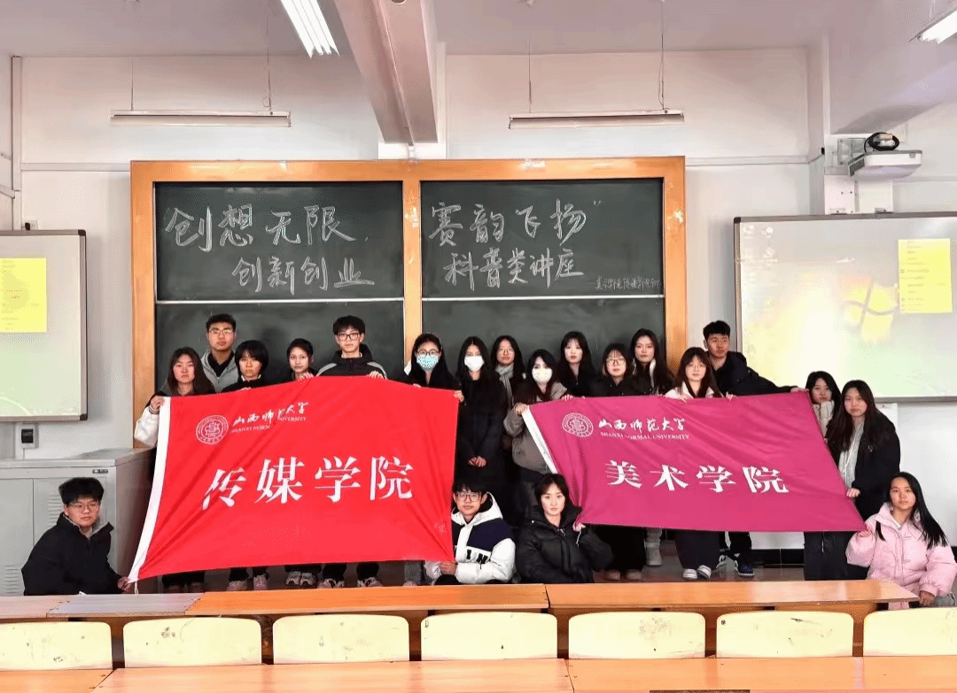 为激发同学们的创新创业意识,提升综合素质,12 月 15 日下午,公司与美术公司于 5209、5210 教室联合开展了“创想无限 赛韵飞扬”创新创业讲座。