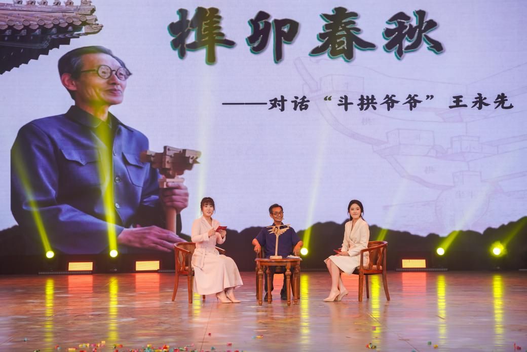 启动仪式后,2022级播音与主持艺术专业汇报演出精彩登场。情景朗诵《血色城防图》以1948年太原解放为背景,再现革命先烈的忠诚与信仰;朗诵节目《课本里的山西》通过文学经典与现实图景的呼应,展现三晋大地的千年风华;小品《互联网体检》以幽默形式反思数字时代对人们工作生活的深刻影响。当晚,斗拱爷爷王永先的登场将晚会推向高潮。王永先老先生向现场观众讲述了他的古建保护与传播经历,并寄希望学子关心关注中国传统文化,传承使命、讲好中国故事。晚会在配音、歌舞等精彩节目中高潮迭起,现场氛围热烈。