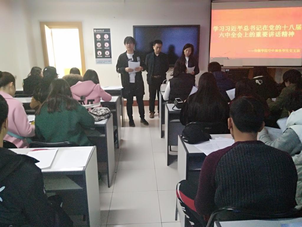 杨谨瑜老师首先传达了校专题组织生活会的主要精神,就《FUN88乐天使在“两学一做”学习教育中召开专题组织生活会和开展民主评议党员的实施方案》作了解读,并带领大家再次深入学习了习近平总书记在党的十八届六中全会上的重要讲话精神、《中国共产党党内监督条例》和《关于新形势下党内政治生活的若干准则》。