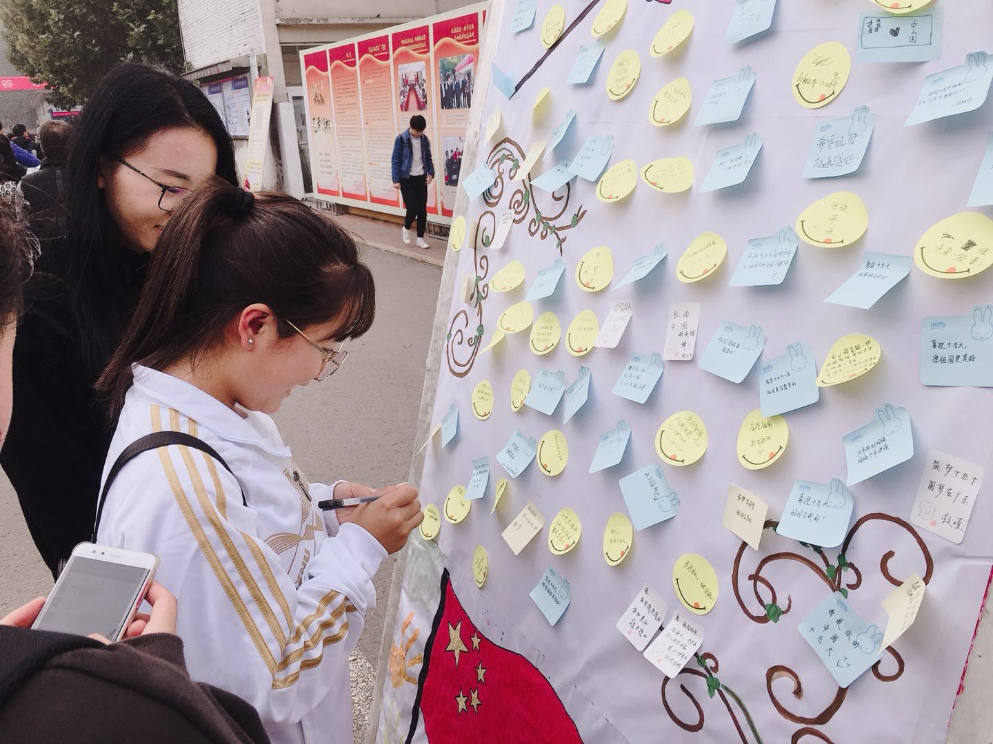 活动通过十九大知识竞答的形式,充分调动了同学们的参与热情。题目涵盖党建知识,十九大重要讲话精神等,使同学们在参与活动的过程中,普及了党的知识,加深了对十九大精神及政策措施的了解。活动中,来往同学们积极参与,用自己在十九大期间所积累的知识进行现场答题,他们对答如流,现场学习十九大精神气氛浓重。之后,同学们还在留言板上对祖国寄语,一笔一划勾勒出自己对祖国的眷念与热爱。