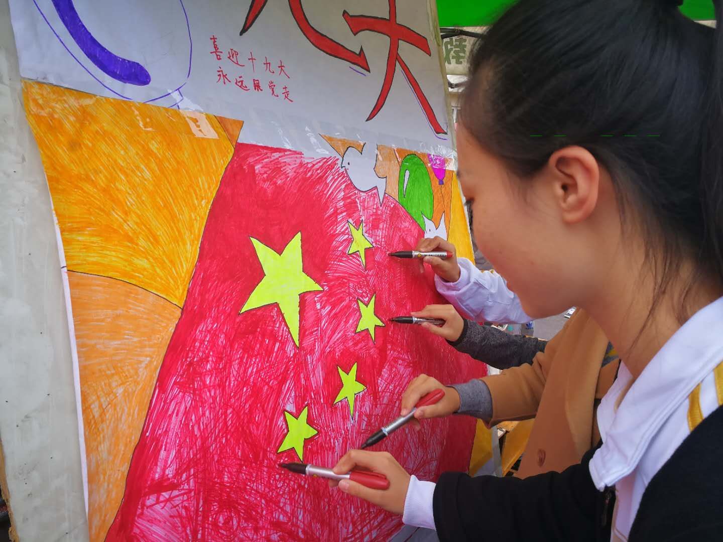 为庆祝十九大胜利召开,增强广大青年对伟大祖国的热爱,进一步将爱国情感化为具体行动,10月25日中午,FUN88乐天使团委在校医院门口举办了“我为国旗添风采”活动。