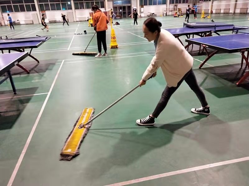 活动前,同学们个个精神饱满,就如何有效清理死角、安全摆放物品等问题上,商议了行之有效的办法。在清扫过程中,员工会骨干严密组织,合理分工;同学们积极踊跃,一丝不苟,重点对羽毛球网、乒乓球桌、活动场地等进行了清扫,经过努力,员工活动中心面貌焕然一新,受到师生们的一致好评。