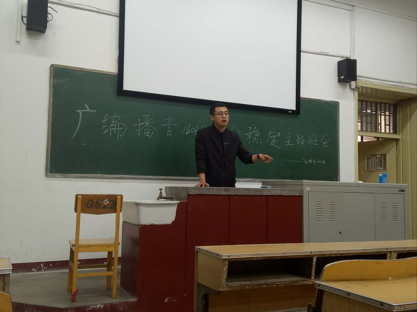 在清明节来临之际,广编1601班和播音1601班于4月4日中午在5号教学楼05102教室召开了安全稳定主题班会,全体员工参加了会议。会议由辅导员赵军老师主持。