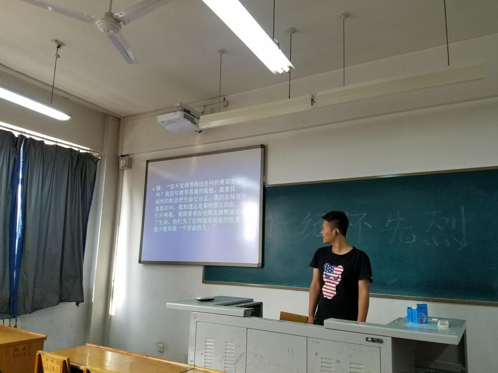 班会前,同学们都进行了大量准备工作,大家对革命先烈英雄的事迹有了详细的了解,对他们的事迹也有了自己切身的感受。班长杜泽通过影片播放,PPT展示等形式,生动的再现了烈士们用自己的血肉为祖国铺就一条崛起与发展的道路,他们的事迹值得后人学习,他们的精神值得后人传承。