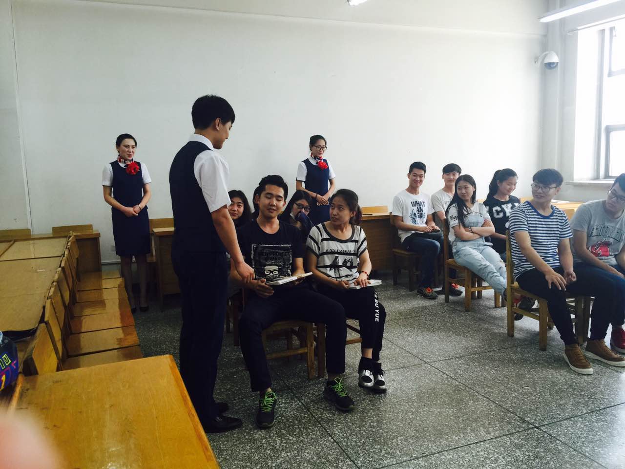 活动开始,心理委员在班长的协助下,说明了此次活动的重要性并做出了具体安排。以乘务组为单位模拟演示当飞机晚点、飞行故障和空中服务这三方面内容,从而展示旅客和乘务员的心理活动及其相关的行为活动。在每一位同学的积极配合下,我班圆满完成了拍摄任务。