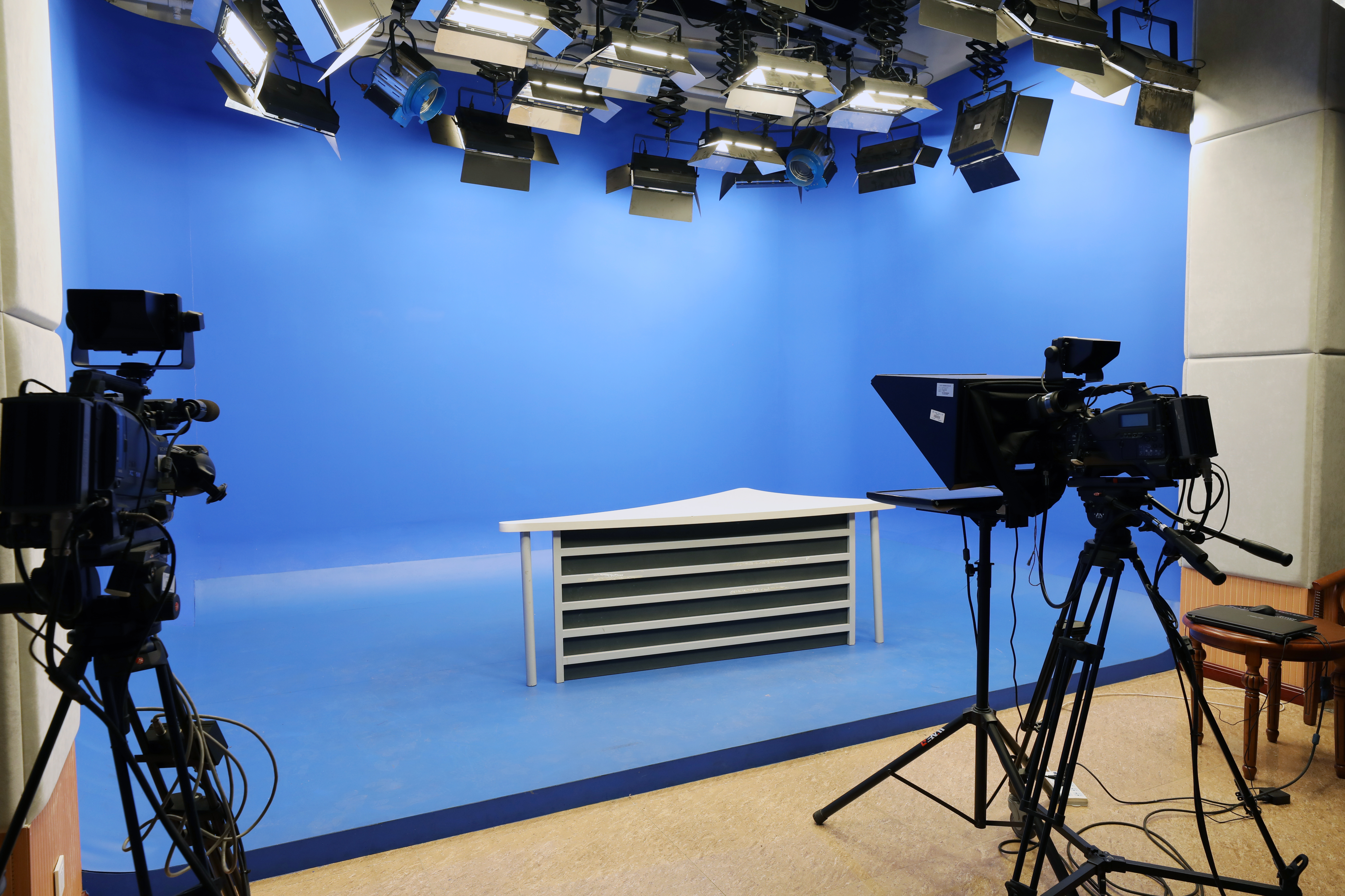 虚拟演播厅建于2014年3月,位于南校区科学会堂401室,使用面积86平方米,总投资160余万元。实验室设备有索尼PMW-580K摄像机三套;蓝狐真三维虚拟演播系统一套;灯光系统一套;高标清非编系统一套。蓝狐真三维虚拟演播系统作为技术核心设备,包含三大主要技术:1、三维场景的实时渲染;2、清晰逼真的色键抠像技术;3、精确、稳定的传感跟踪技术,能够实时的将计算机制作的虚拟三维场景与电视摄像机现场拍摄的人物活动图像进行数字化合成,使人物与虚拟背景能够同步变化,从而实现两者天衣无缝的融合,以获得完美的合成画面。虚拟演播厅承担电视节目策划、电视摄像、电视节目播音与主持、电视节目现场制作与导播等课程的实验教学任务。